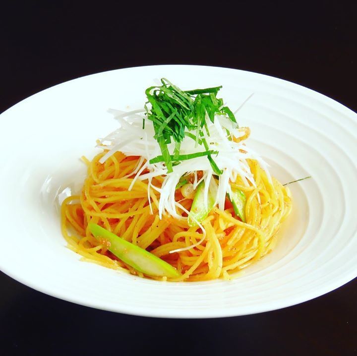 大葉と白髪ネギの明太パスタ